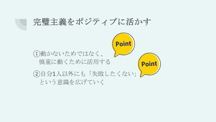 完璧主義とは、言い換えると「失敗したくない」という気持ちです。
