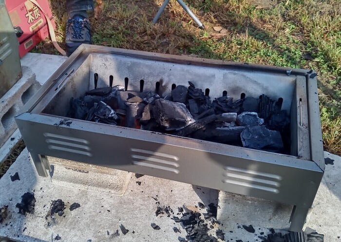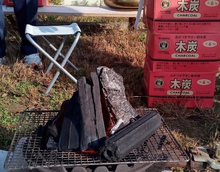 訓練当日の朝、備長炭の火起こしからスタートしました。