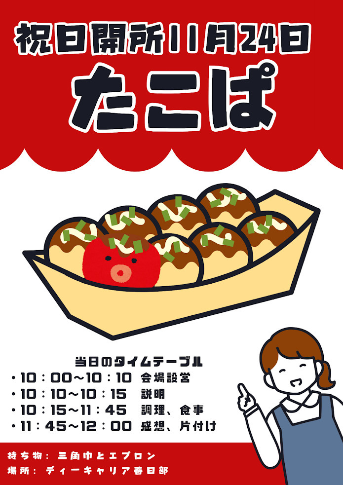 11月下旬の祝日には初めての“たこ焼き”に挑戦しました。