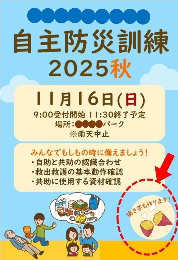 そして防災訓練ポスターにも焼き芋のPRを入れました。