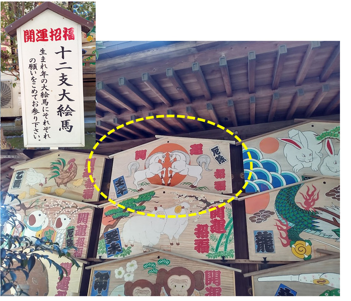神社には干支の動物が描かれた絵馬がありますが、