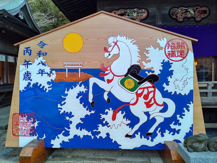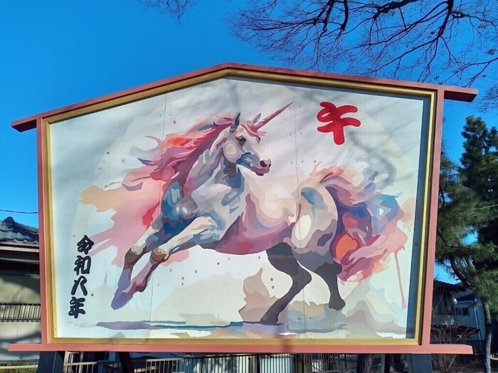 ココの巨大絵馬も色合いが豊かで躍動感を感じるウマが描かれていました。