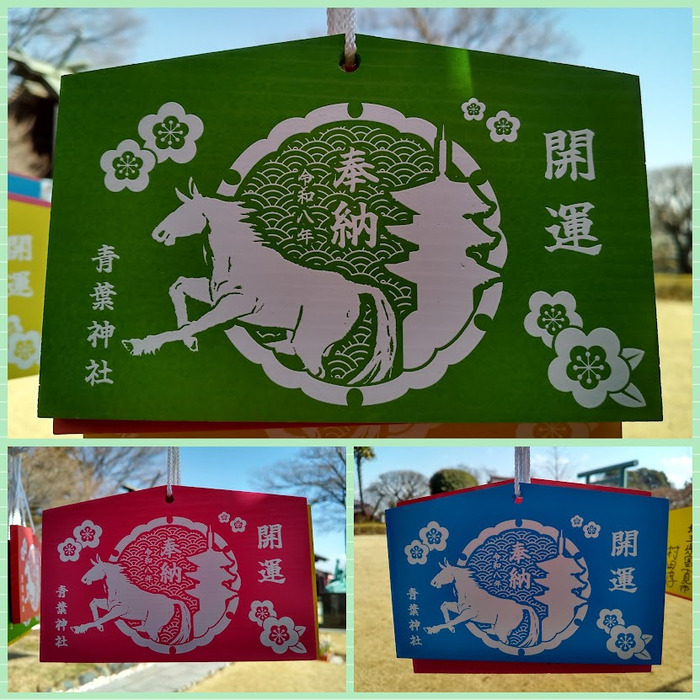 この様々な色の板に描かれたウマがとても素敵な絵柄に感じました。