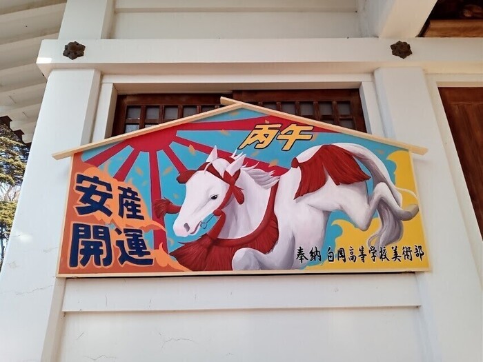 この神社では、毎年、近隣の高校美術部が巨大絵馬を描いて奉納しており、