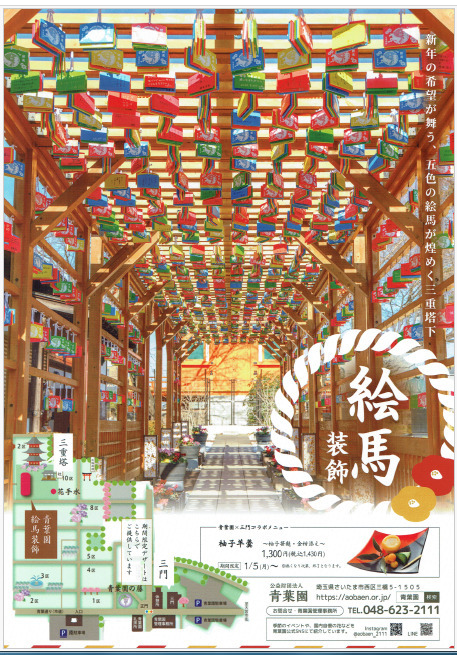 例年、年初めには回廊にたくさんの絵馬が飾られることで有名です。