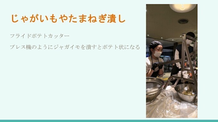 写真にあるようなプレス機に、じゃがいもをセットすると、