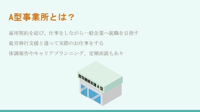 A型事業所とは雇用契約を結び、実際にお仕事をして給料をいただきながら、