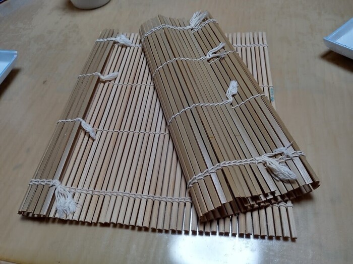 巻き簾を使って何本も太巻きを作っていました。