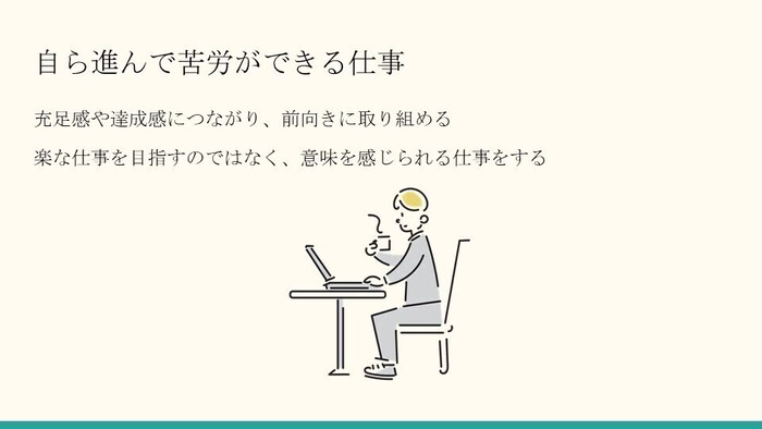 でもそれが「自ら進んで苦労ができる仕事」だと、充足感や達成感につながり、前向きに取り組めるのです。