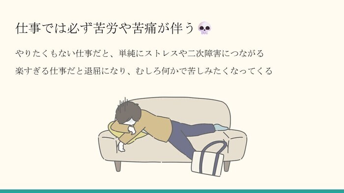 そして、私たちは就労移行支援を通して就職を目指しますが、仕事では必ず苦労や苦痛が伴います。