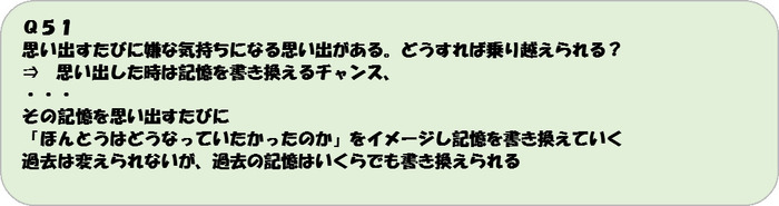 リフレーミングを絡めて記憶の書き換えをしていきます。