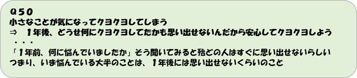 ⇒ 一見マイナスな出来事も背景や別の意味を付けることでチャンスに変えられる。