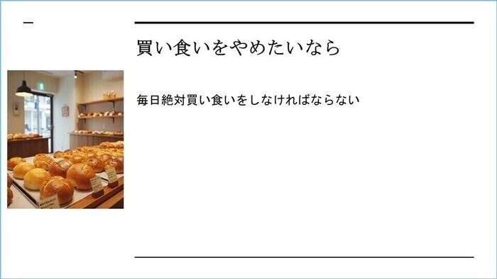 たとえば買い食いをやめたいなら、「私は絶対毎日1回は買い食いをしなければならない」とルールを作ります。