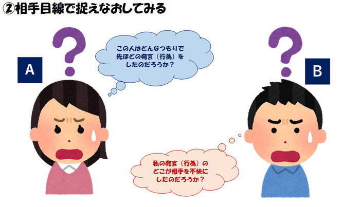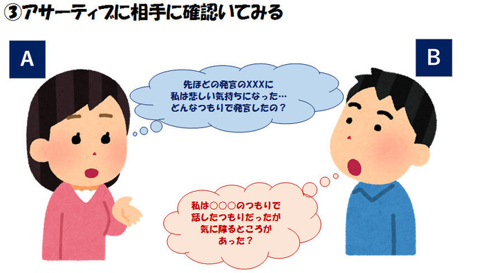 ⇒ 冷静になってアサーティブに「私メッセージ」で確認してみる