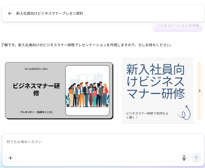 プロンプトを入力するだけで、7ページのプレゼンテーションを自動生成。