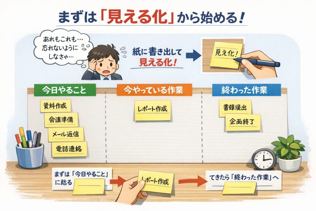 頭の中だけで仕事を管理しようとすると、思った以上にエネルギーを使います。 「あれもやらなきゃ、これも忘れちゃいけない」と考え続けるだけで、疲れてしまうこともあります。