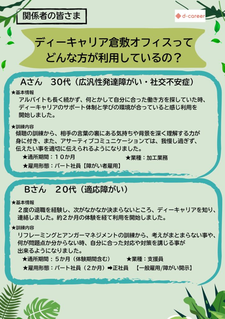 🌸就労移行支援事業所ディーキャリア倉敷オフィスから、就職・卒業へ🌸