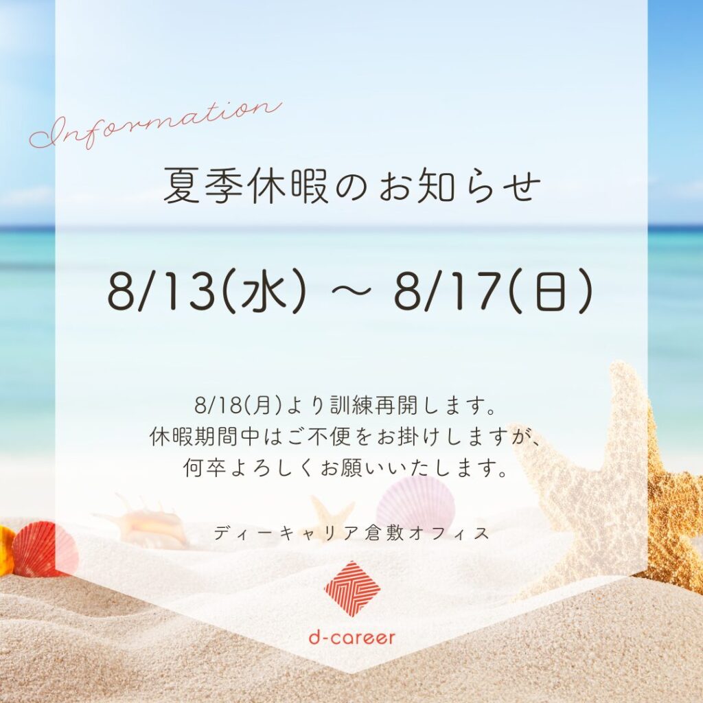誠に勝手ながら、以下の期間を夏季休業とさせていただきます。
