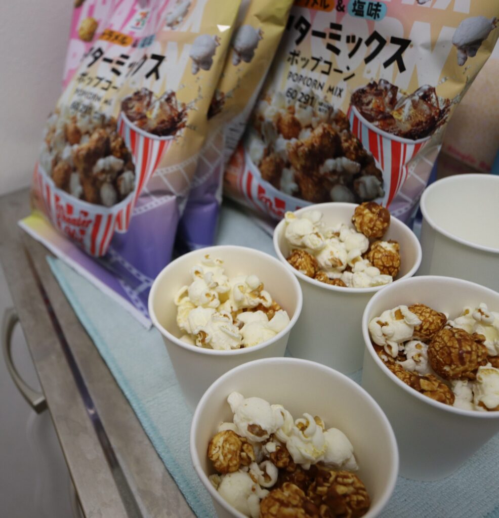 映画にはポップコーンも欠かせない・・・✨という事で、キャラメル&塩味のポップコーンもいただきました♪