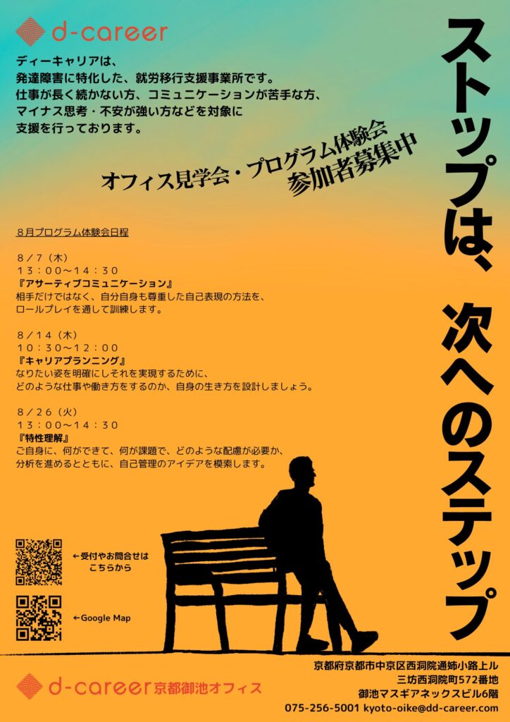 ディーキャリア京都御池オフィスでは、精神・発達の障害をお持ちの方で、