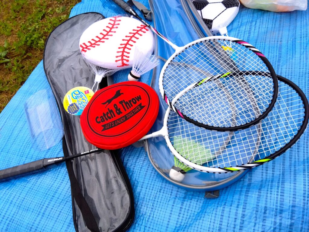 セルフケアの一環で外の空気を吸って、バドミントンやフリスビーをおこない