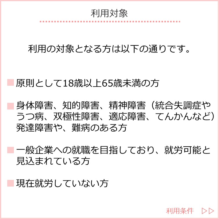 ・18歳~65歳未満の、発達障害、精神障害、難病のある方。