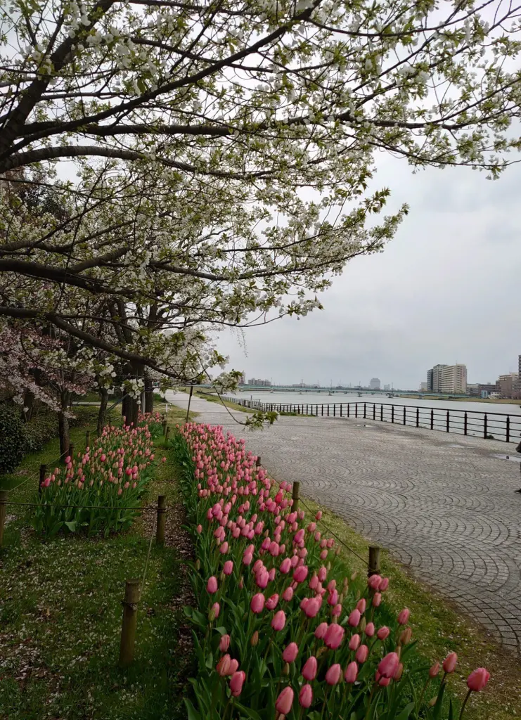 新潟市は4月1~2日が桜満開だったのでこの日は少し葉が出始めていました。チューリップはこれからがシーズンですね!