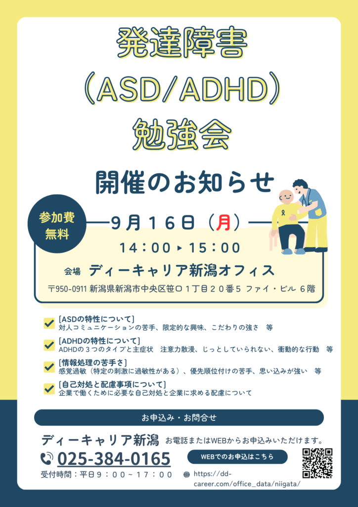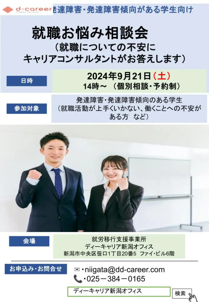 ディーキャリア 新潟オフィスは大人の発達障害に応じたプログラムの就労移行支援事業所です。