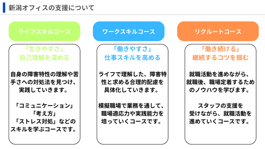 ディーキャリア新潟オフィスは「就労移行支援事業所」に当たります。