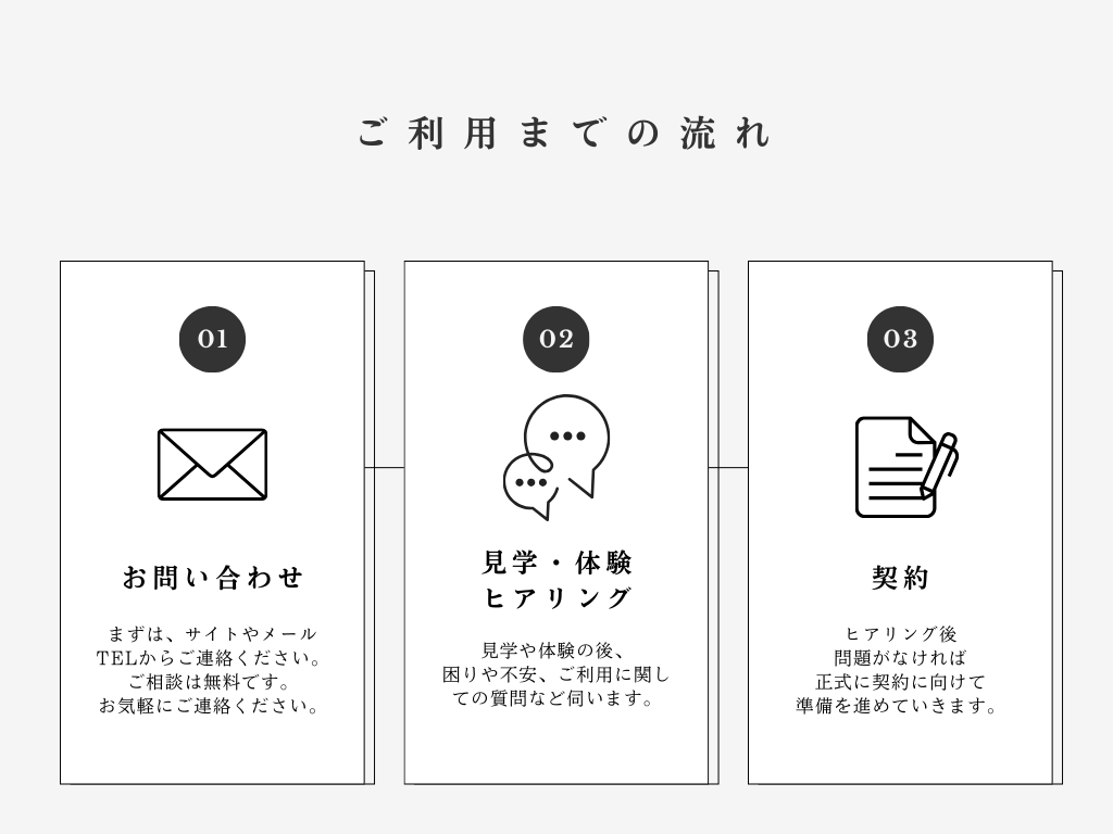 見学や体験をおこなっています。環境/プログラム内容/スタッフ/ご利用されている方など、実際に見学や体験していただくことで、少しでも不安が解消できればと思います。