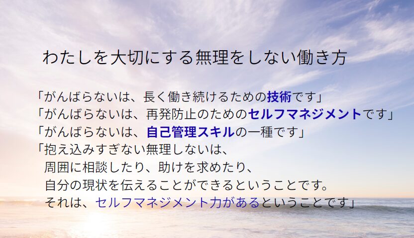「頑張らない働き方」「頑張りすぎていたサインについて」