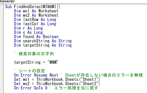 これを「Alt+F11で出てくるウィンドウにコピペして」と言われたため、そうします。