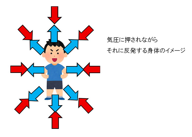 我々の身体はこのように外の圧力と内の圧力をバランスよく保っています。
