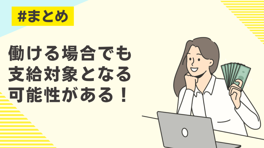 「働くことができている」だけの理由では、不支給にはならないということ。(=就業中や就労準備中の方でも支給対象になることがある) - 感想: