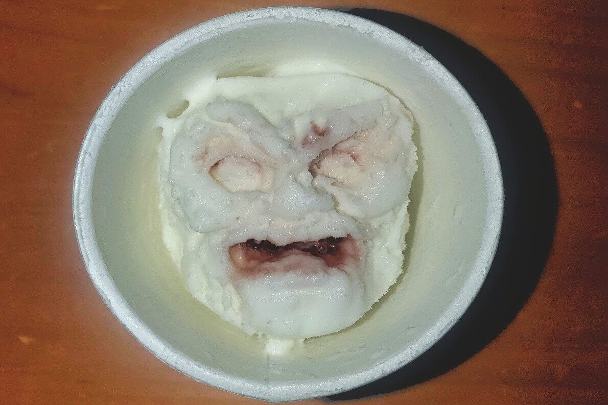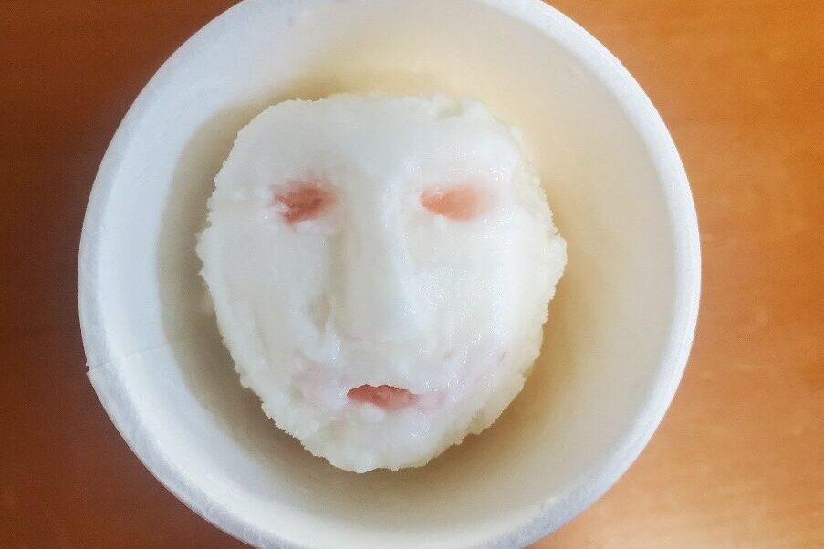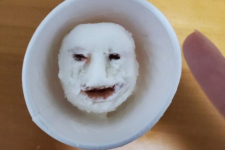 ・アイスにお顔の模様をしたソースがかかっているので、それを軸に新しい顔を掘っていきます。
