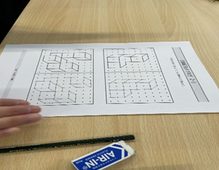 レベル1の点つなぎ~レベル3の点つなぎ。線で見つけるグループ・点で見つけるグループに別れました。
