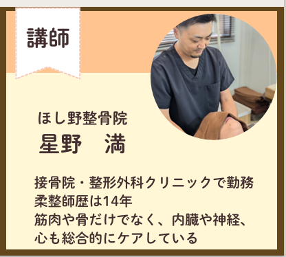 そんな悩みを持つ方に向けて、祝日開所では整骨院(鍼灸師)の方を講師をお迎えし、プロ目線で「片頭痛、睡眠不足、気持ちの落ち込み…さまざまな悩みに対する体の仕組み、セルフケアの方法」を教えていただきました。