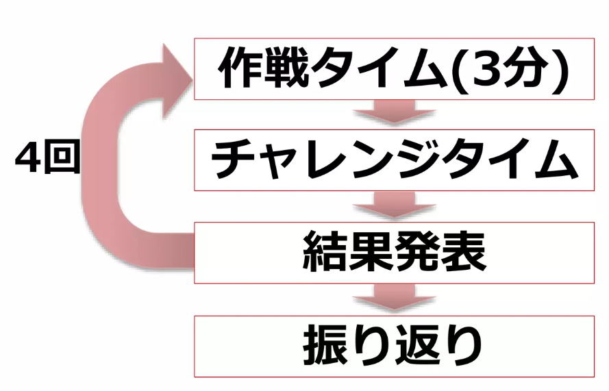 ・ゲームは4回繰り返し、最も速いタイムをチームの記録とする