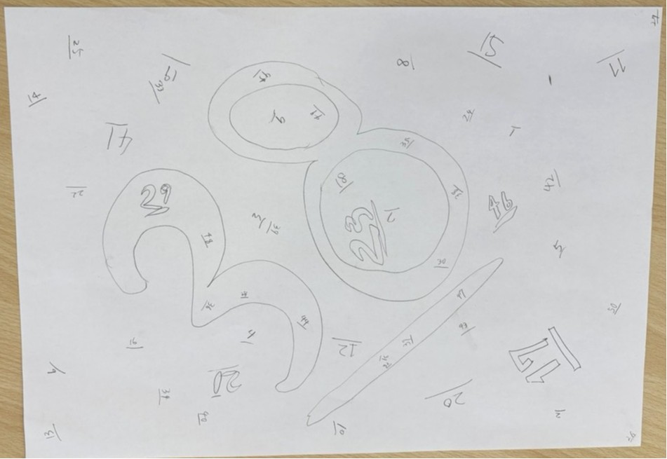 順番にタッチするなんて最初は簡単と思っていましたが、数字の大きさや向き、フォントがめちゃくちゃなので意外と難しく、それをチームメイトと順番にタッチすることで余計に難易度が上がります。