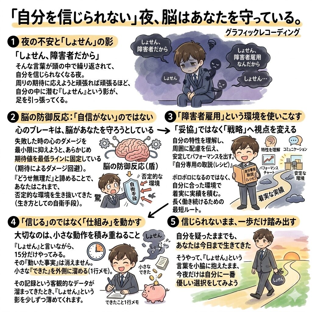 - 「自分専用の取説(レシピ)」で働くプロ: 自分の特性を理解し、周囲に配慮を伝え、安定してパフォーマンスを出す。これは「妥協」ではなく、自分という人間を乗りこなすための高度な仕事術です。