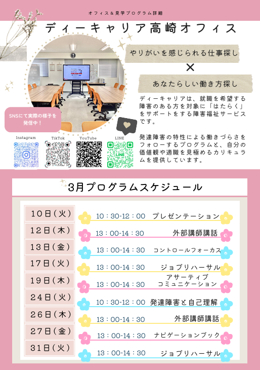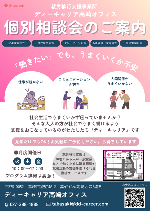 - 場所: ディーキャリア高崎オフィス