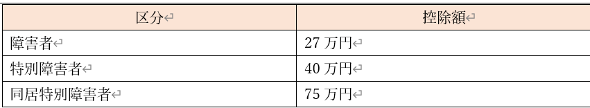 障害者控除とは、所得税法上の障害者に該当する場合に受けることができる所得控除になります。障害の程度によって金額が異なります。