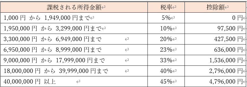 そこから給与所得控除を差し引くことで給与所得を算出します。その後に所得控除を差し引いて課税所得を算出します。最後に課税所得に税率をかければ所得税が算出されます。