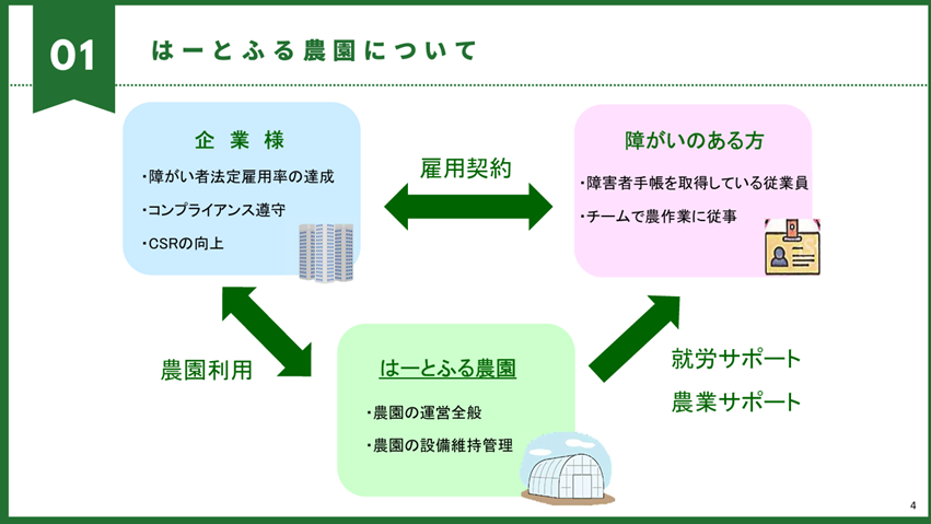 この農園型障がい者雇用に取り組んでいる「はーとふる農園」についてご紹介いたします。