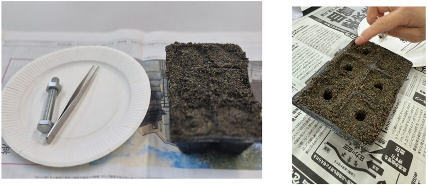土に決まった深さの穴を開ける道具を使ったり