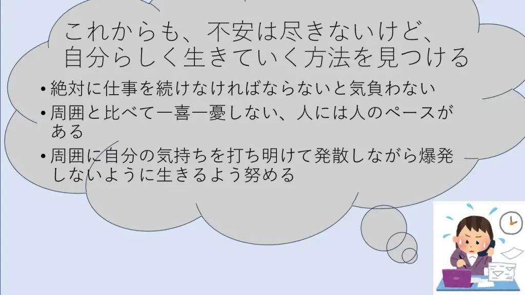 ディーキャリア蕨オフィスで過ごして「安心できる居場所ができた」というのが一番うれしかったと語ってくれたYさん。Yさん!卒業しても、ここにあなたの居場所はあります。疲れたらいつでも来て、休んで、エネルギーを補充してくださいね!応援しています!