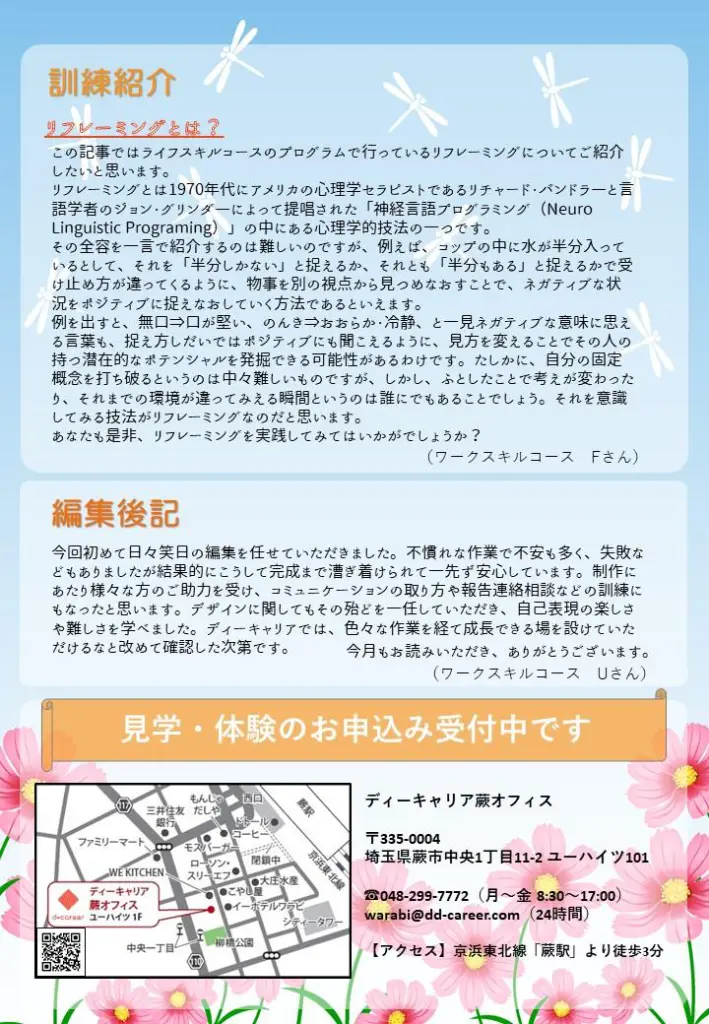 ディーキャリア蕨オフィスのニュースレター~「日々笑日」9月号紹介