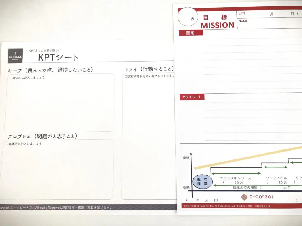 そして利用者の皆様に考えていただいたKPTシートを基にスタッフと共有し、その場でフィードバックをおこない理解度を高めています。場合によっては目標の変更や追加をおこなっています。最初はあまり書けない利用者も、一旦腹落ちすると徐々に書けるようになっていきます。目標に向かって日々取り組み達成感を味わう、そしてその達成感をスタッフと共有できることがこの訓練の醍醐味の一つだと思っています。