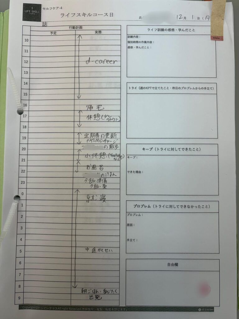 その際に使用していたのが「ライフスキルコース日誌」です!