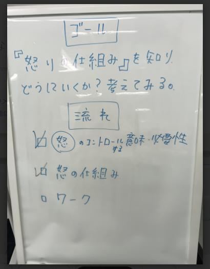 - 実際に職場を想定して、怒りが出た時に対策方法を考え実践していく